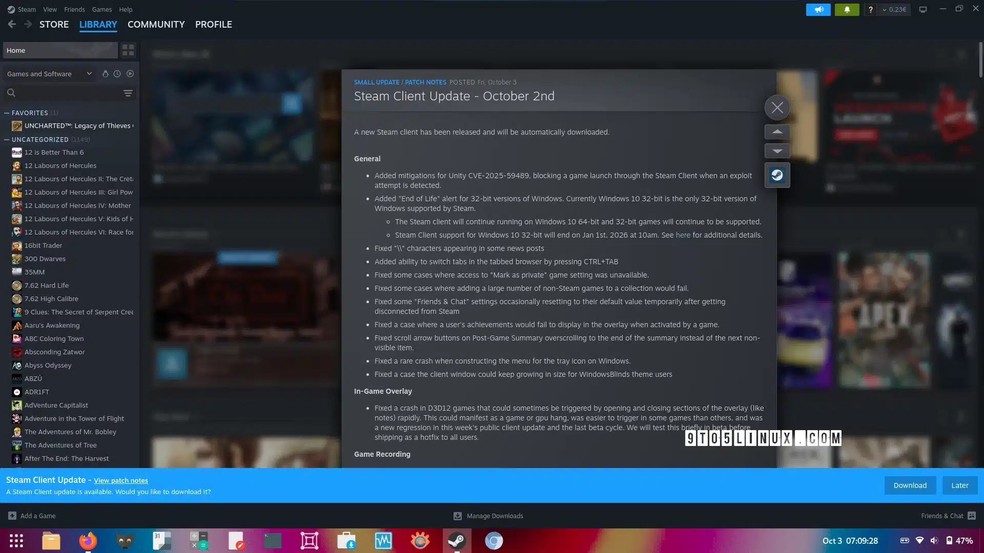 For more details about the changes introduced in this update, refer to the official Steam release notes.
