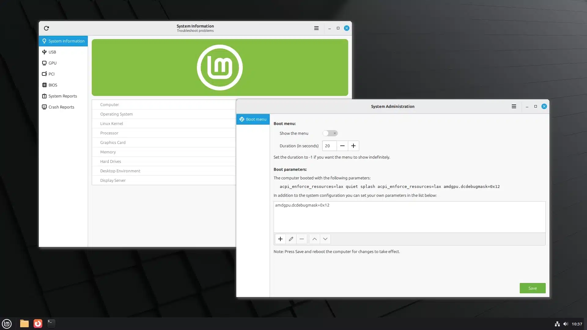Alongside System Information, the System Administration tool has also been introduced. This utility allows users to manage Linux Mint’s boot menu settings, including the ability to hide or show the menu, set timeouts, and adjust boot parameters. Future updates to System Administration are expected to introduce additional features for system management.